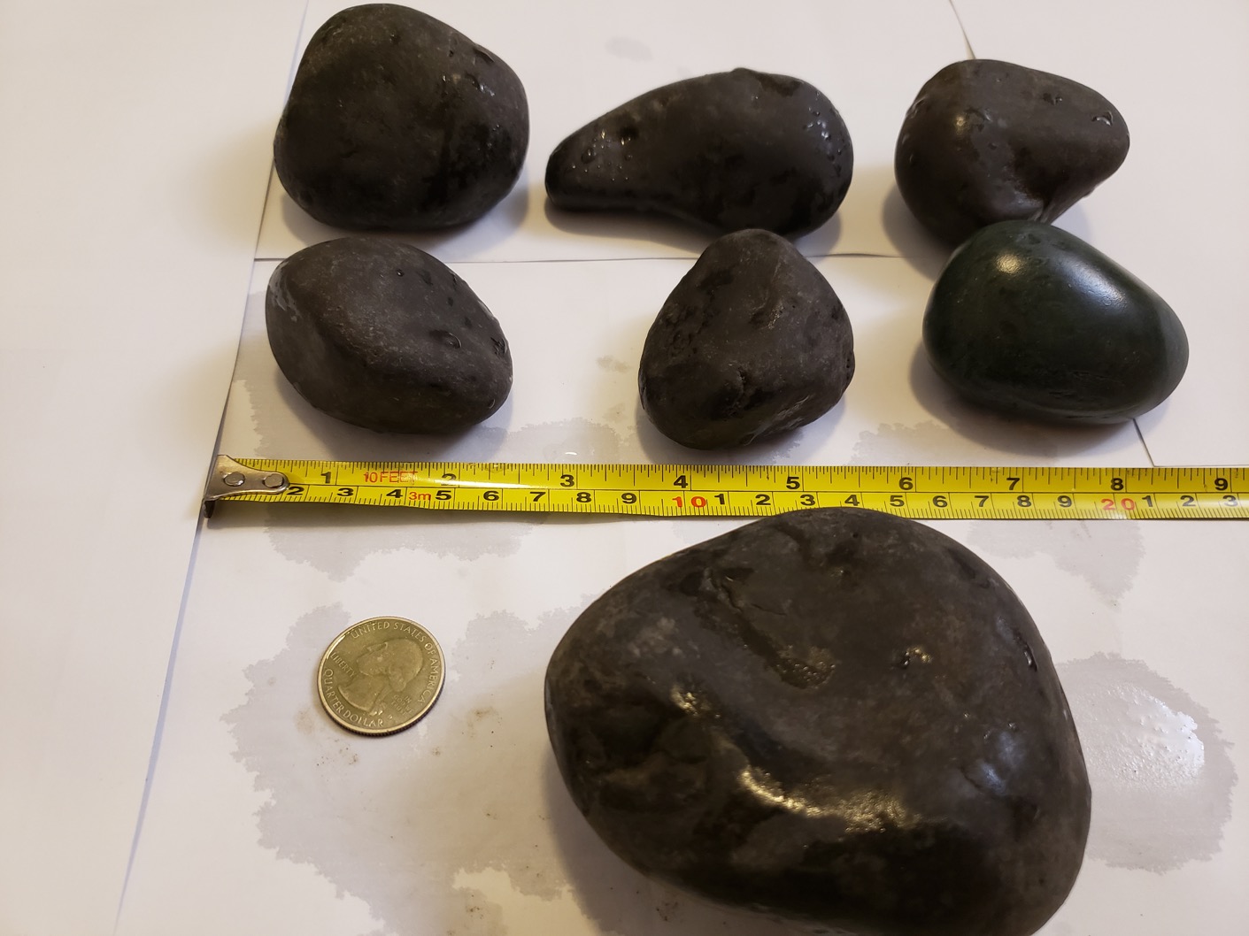 Keep in mind that the pictures were taken when the rocks were wet to give you an idea what the rocks will look like under water. When the rocks arrive they may be dry and the black not as dark as when wet. That’s normal and the rocks will look exactly as pictured when exposed to water.